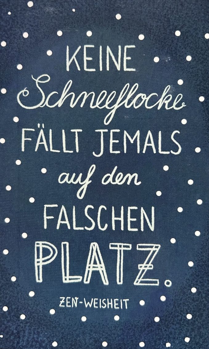 Keine Schneeflocke fällt jemals auf den falschen Platz – das bedeutet für mich, dass es für jedes Wesen, für jede Pflanze, für jede Situation und jedes Erleben eine höhere Ordnung gibt und das tatsächlich nichts auf dieser Welt ohne einen Grund geschieht – auch wenn wir diesen oftmals nicht erkennen und es bestimmt unglaublich viele Dinge gibt, die wir nicht verstehen oder ansatzweise gut heißen können.